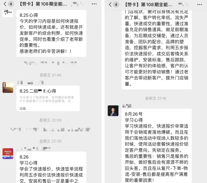 此次培訓為了讓學(xué)員們更加容易掌握課程內容,采用分組制競爭制,通過(guò)視頻會(huì )議+社群營(yíng)銷(xiāo),學(xué)員們互相幫助,講師們隨時(shí)隨地了解學(xué)員學(xué)習狀態(tài)。